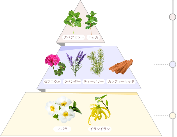 爽やかなミントが、中心となるミドルの香りにふんわりと寄り添います。